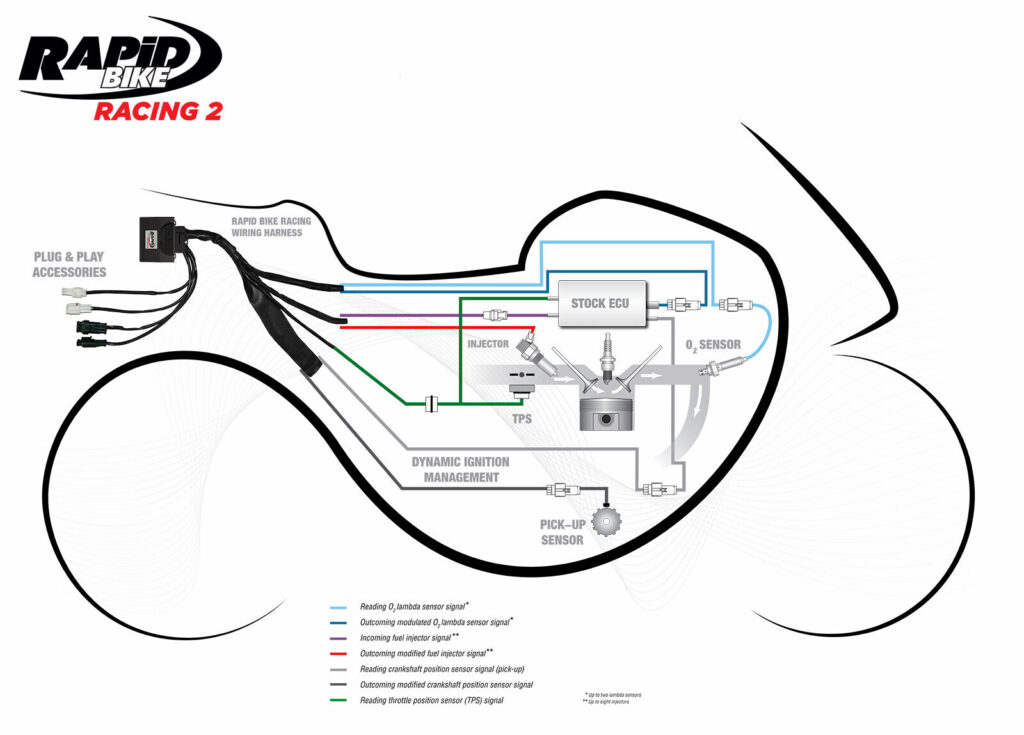 One of the main innovations is the intuitive APP manageable via smartphone. In addition to these new features, the Rapid Bike RACING2 retains all the advanced characteristics already present in the Rapid Bike EVO. The lambda probe signal management ensures the tuning of the exclusive self-adaptive function: the fuel mapping updates automatically while riding the vehicle.