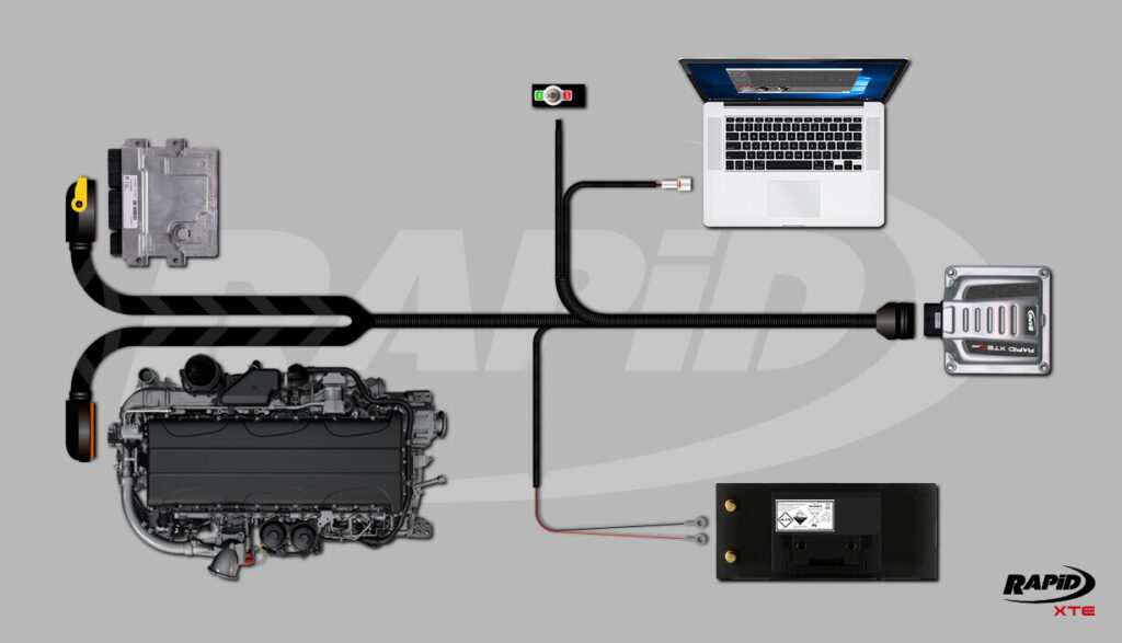 Rapid XTE intervenes on the opening of the injectors, modifying the quantity of fuel injected into the combustion chamber with maximum precision thanks to the management of each individual injector, can control two analog signals such as rail pressure and turbo pressure, moreover it can also interact on the CAN line.