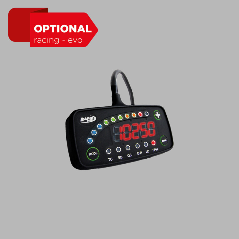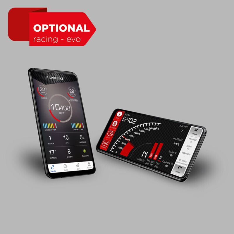 New shifting device exchanging information with EVO and RACING add-on modules via CAN-bus allows to perform auto-calibration of shifting kill-time in relation to the pressure applied in both directions, upper and lower gear, while matching the engine peculiar configuration. A greater bike’s handlebar control and lower mechanical stress, granted by the unique ‘self-learning’ process, improve considerably driving safety.